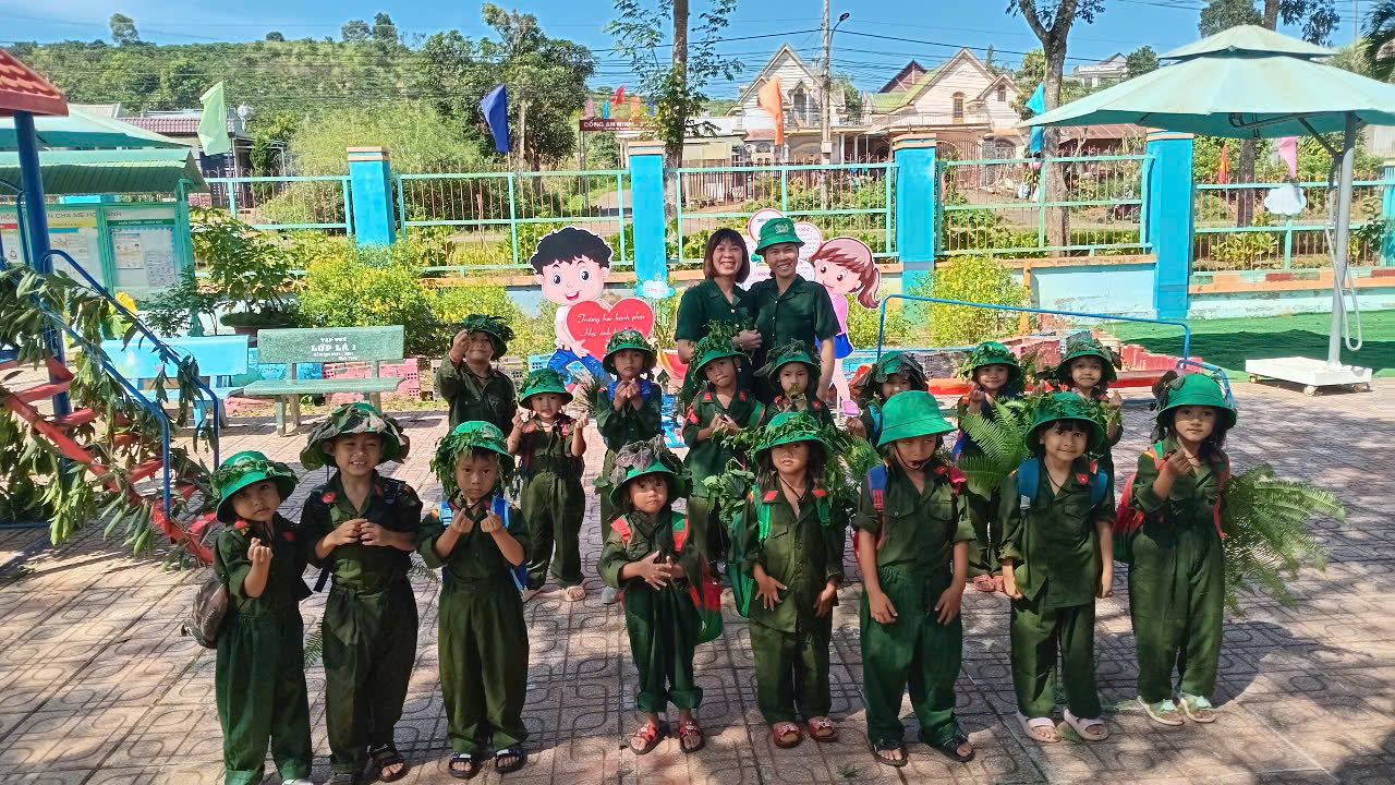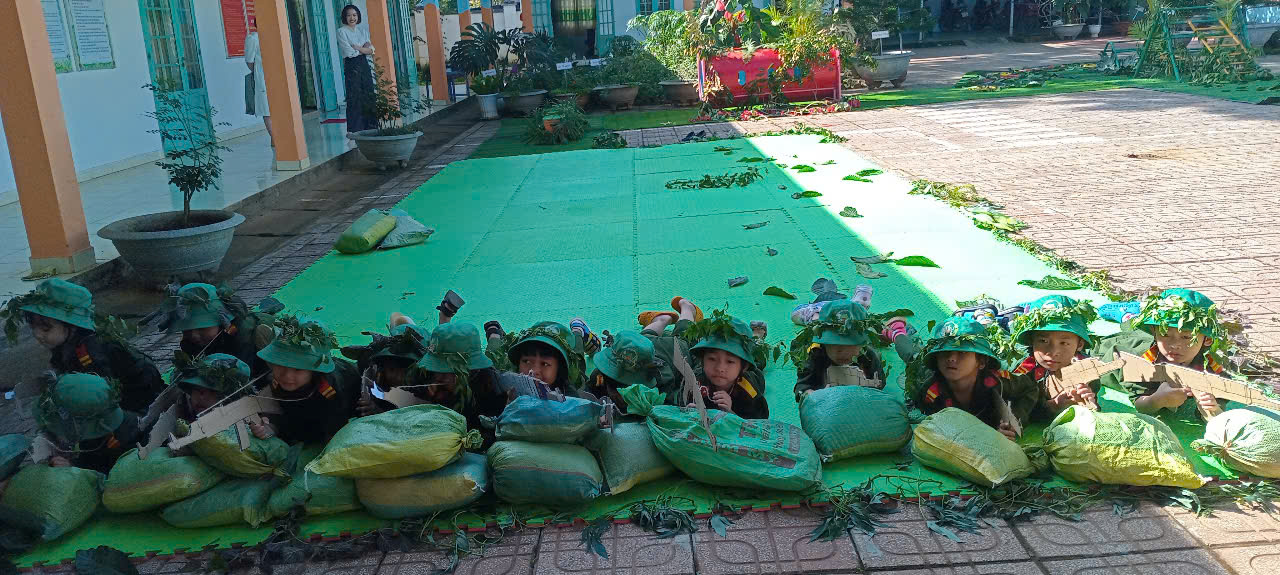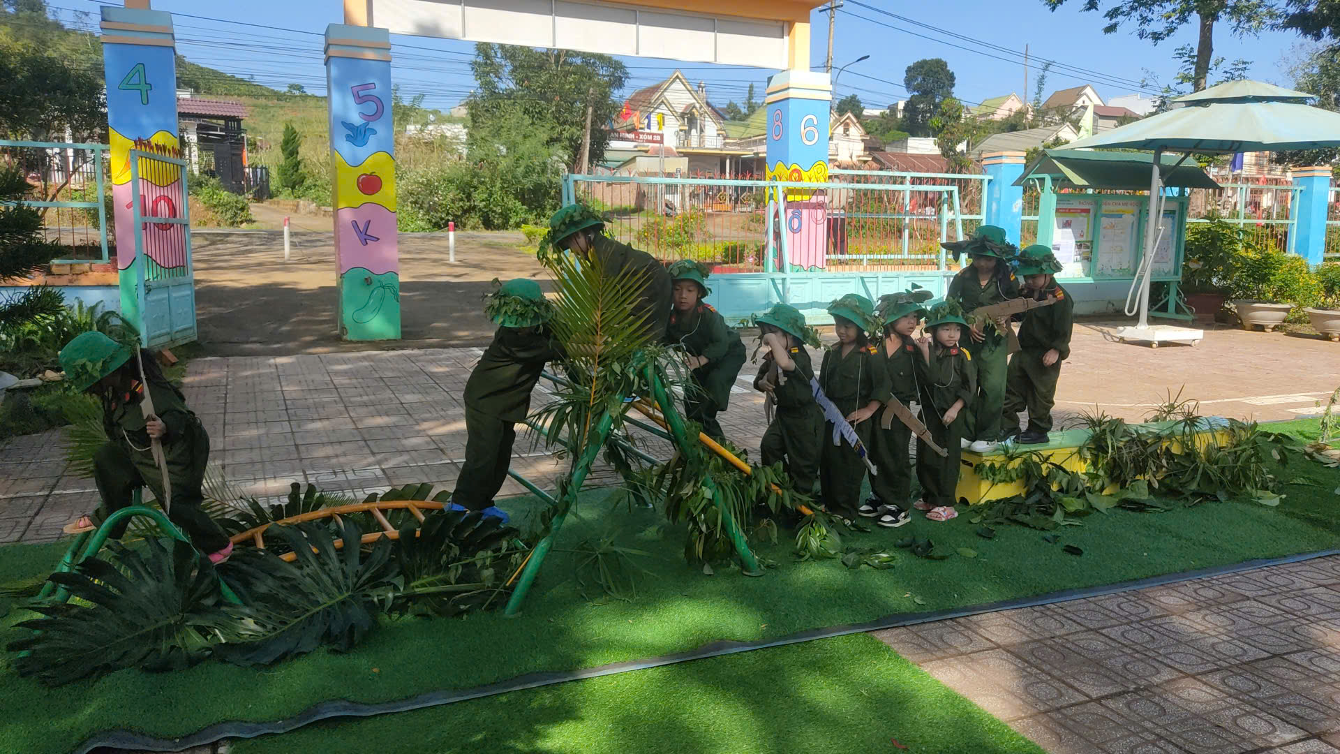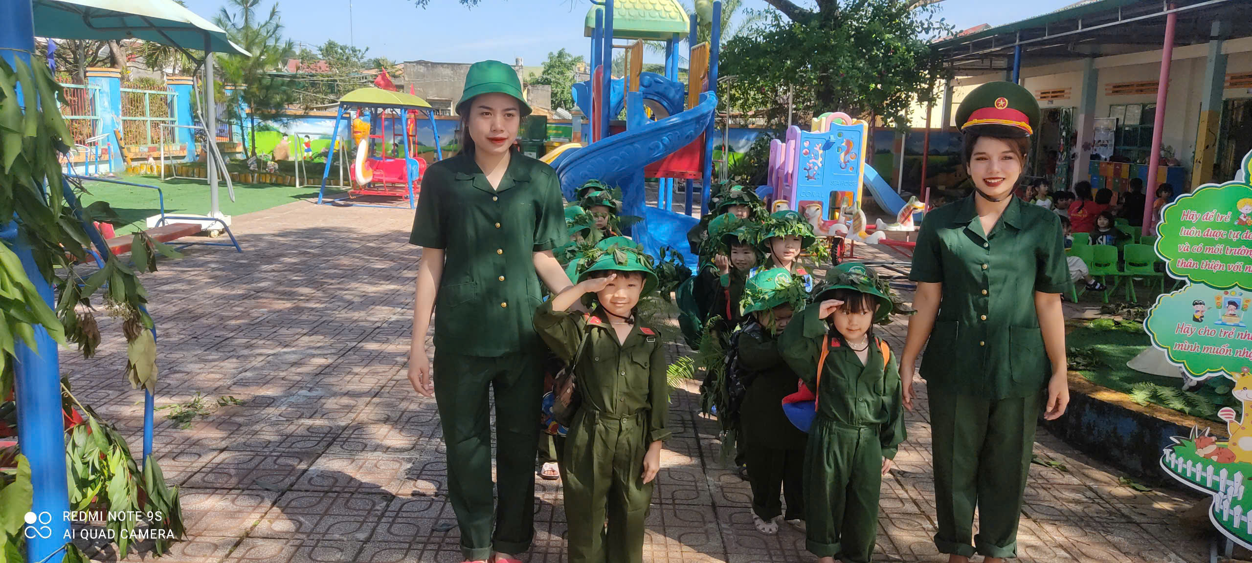 Hoạt động trải nghiệm: " MỘT NGÀY LÀM CHÚ BỘ ĐỘI" các bạn nhỏ trường Mẫu Giáo Gung Ré.Hướng tới kỷ niệm 80 năm ngày thành lập Quân đội nhân dân Việt Nam ( 22/12/1944- 22/12/2024). Với sự sáng tạo, khéo léo của mình, cô và các cháu trường Mẫu Giáo Gung Ré đã tái hiện môi trường trực quan sinh động, giúp cho các con hào hứng khi tiếp cận.Hình ảnh chú bộ đội đến với các con trở nên gần gũi và thân thuộc hơn, không phải chỉ nghe cô kể chuyện, không chỉ xem trên màm hình ti vi, mà hôm nay các con được khoác lên người bộ quân phục, học cách ngụy trang khi hàng quân, thực hiện các nhiệm vụ trong chiến đấu của người lính thực sự.....